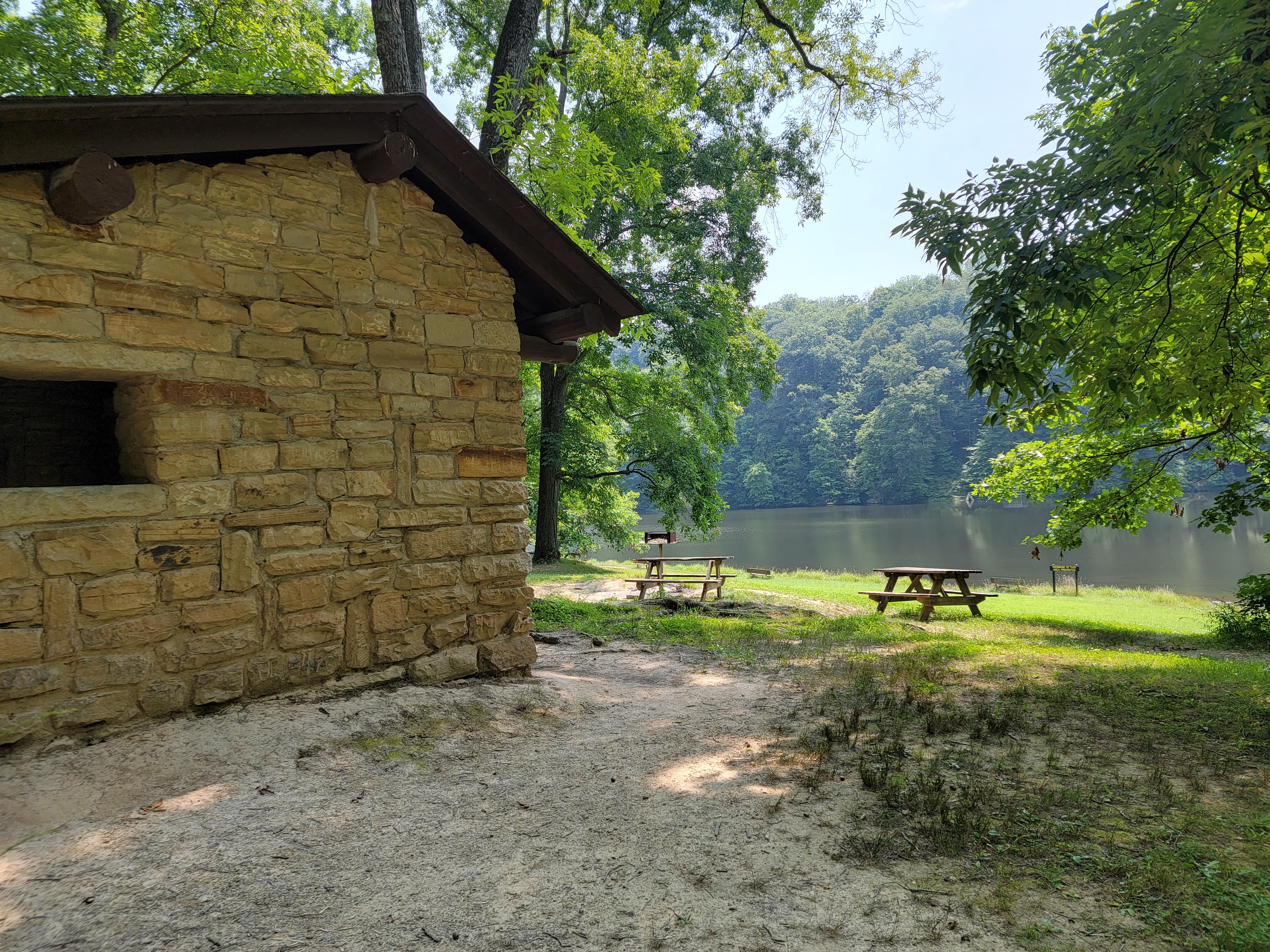 Hoosier's Nest Shelter is located near a very large open playing field, the Park Office and Fire Tower. It is in a very high traffic area. This shelter has a vault toilet and drinking water. Modern wheelchair accessible restrooms are nearby, and the Camp Store is just 1.1 miles down the road.